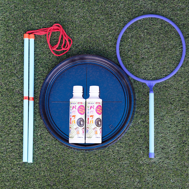 超巨大なシャボン玉を手軽にあそべる、2種類の道具と、プロも使用しているシャボン液のセット