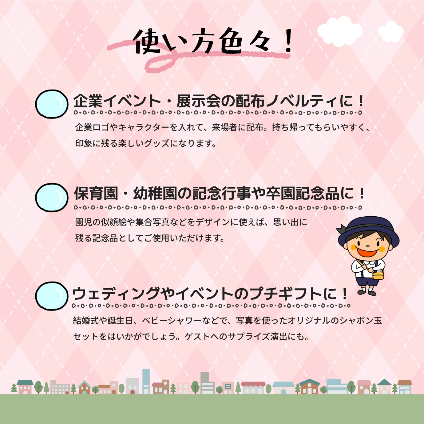 ・印刷が入っていない白無地のノベルティシャボン玉(商品)はご注文いただけません。